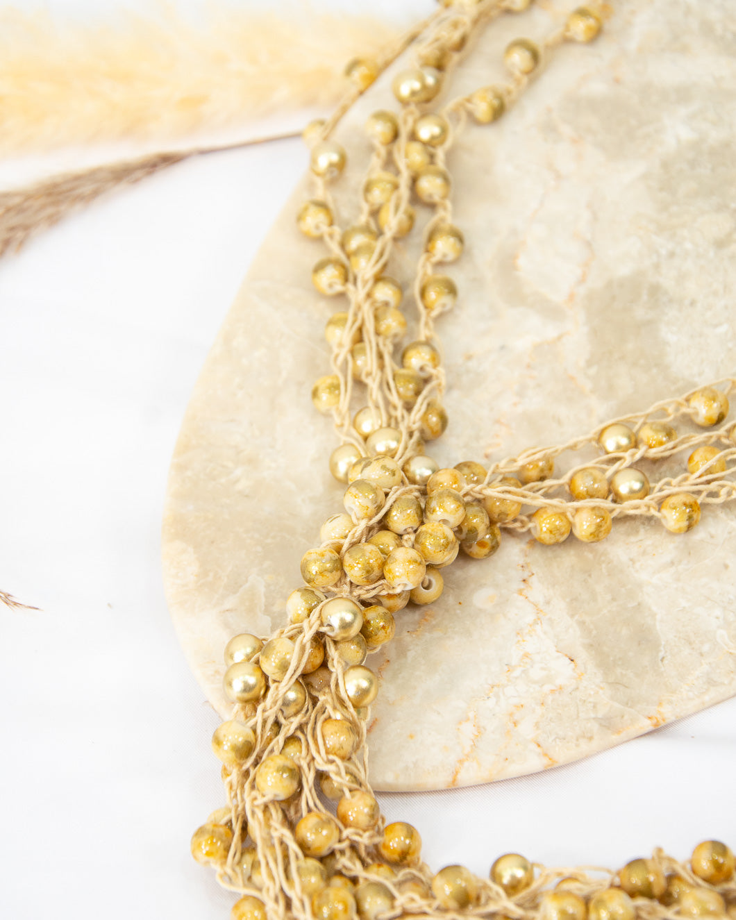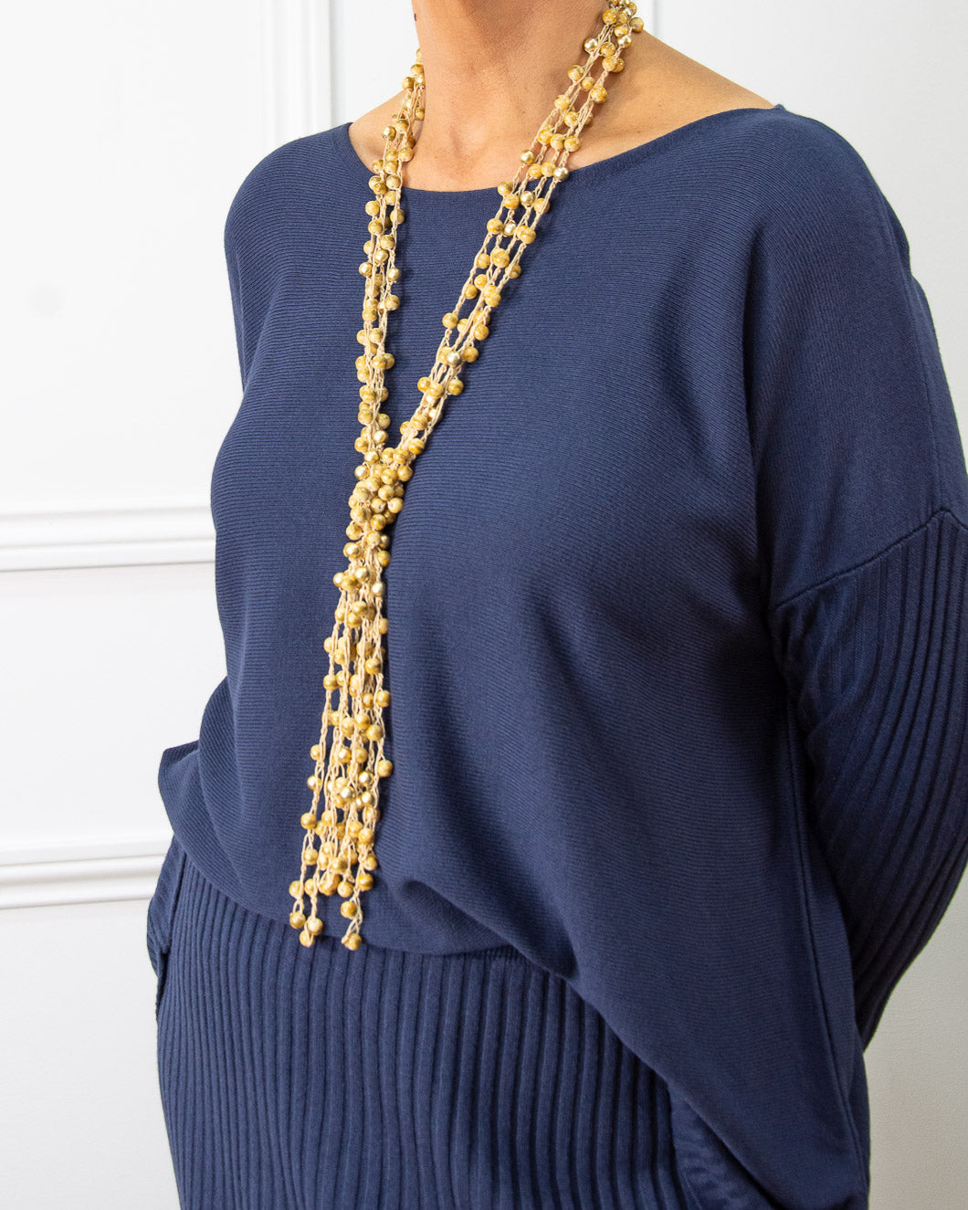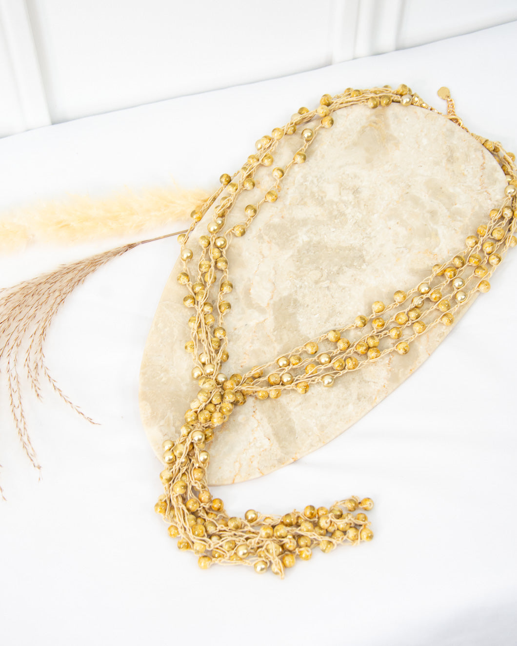 Composición textil y resina. Disponible en dos colores, negro y dorado. Medidas: largo 35cm + 20 cm de adorno.