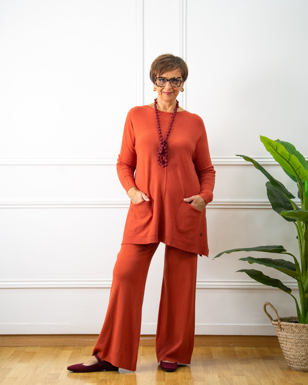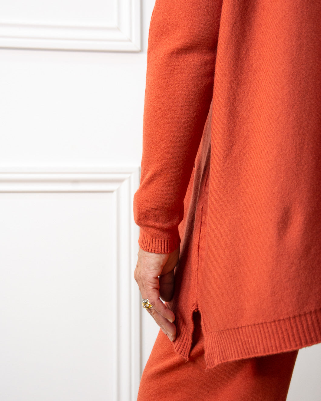 Jersey de punto fino, tacto extra suave, lleva el cuello a la caja, dos bolsillos delanteros, aberturas laterales de 8cm.