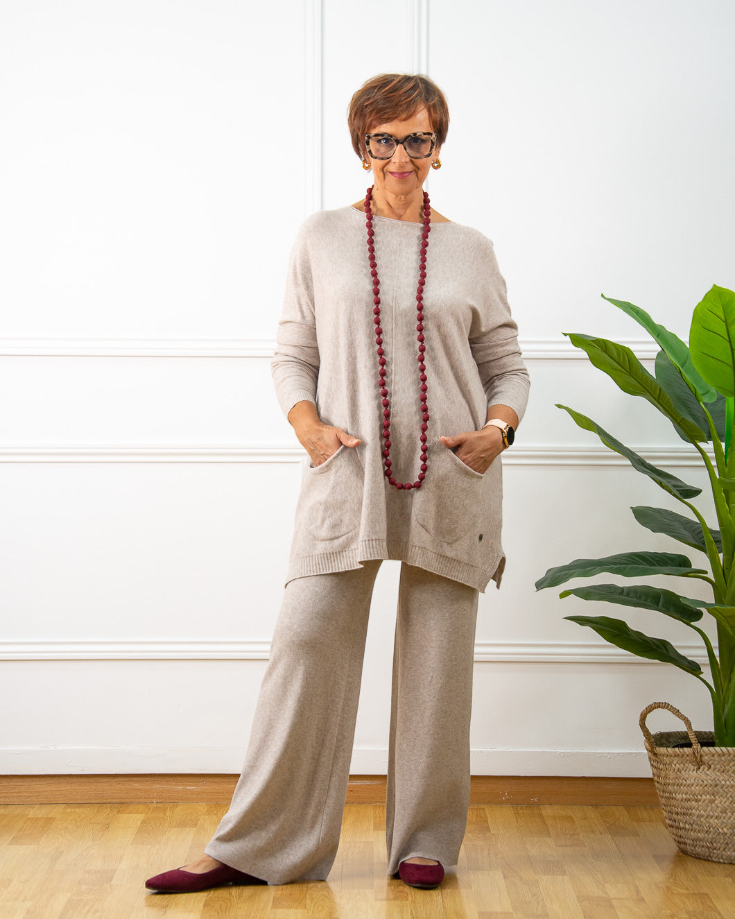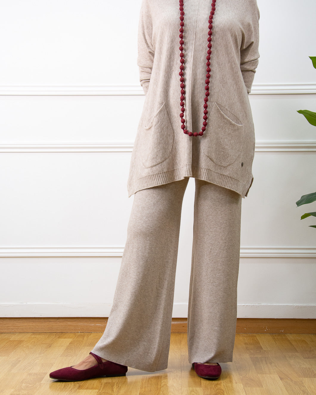 Pantalón de punto muy suave, lleva goma en la cintura de 4 cm, pata recta desde la cadera. Ideal para llevar en conjunto con el jersey Cloe.