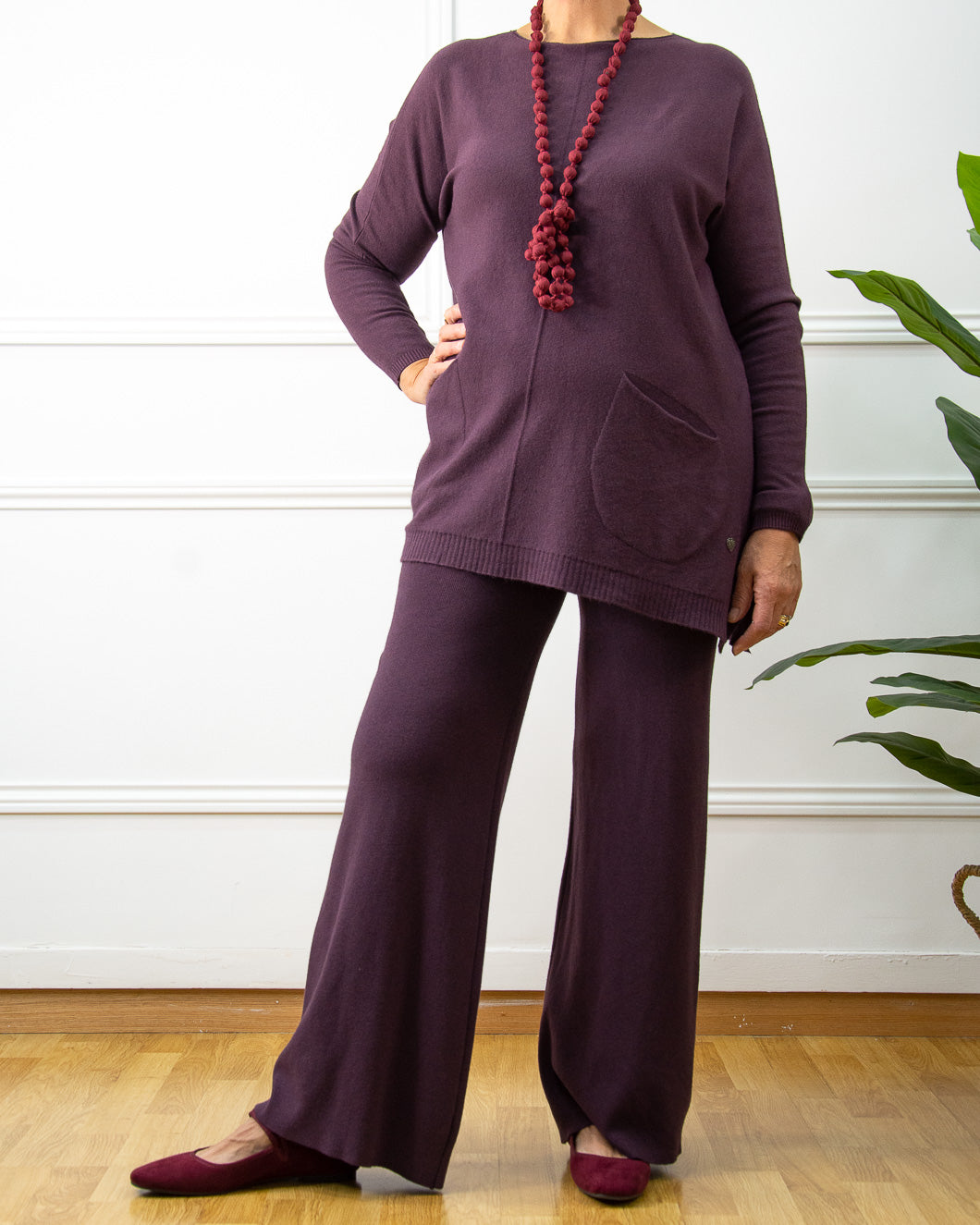 Pantalón de punto muy suave, lleva goma en la cintura de 4 cm, pata recta desde la cadera. Ideal para llevar en conjunto con el jersey Cloe.
