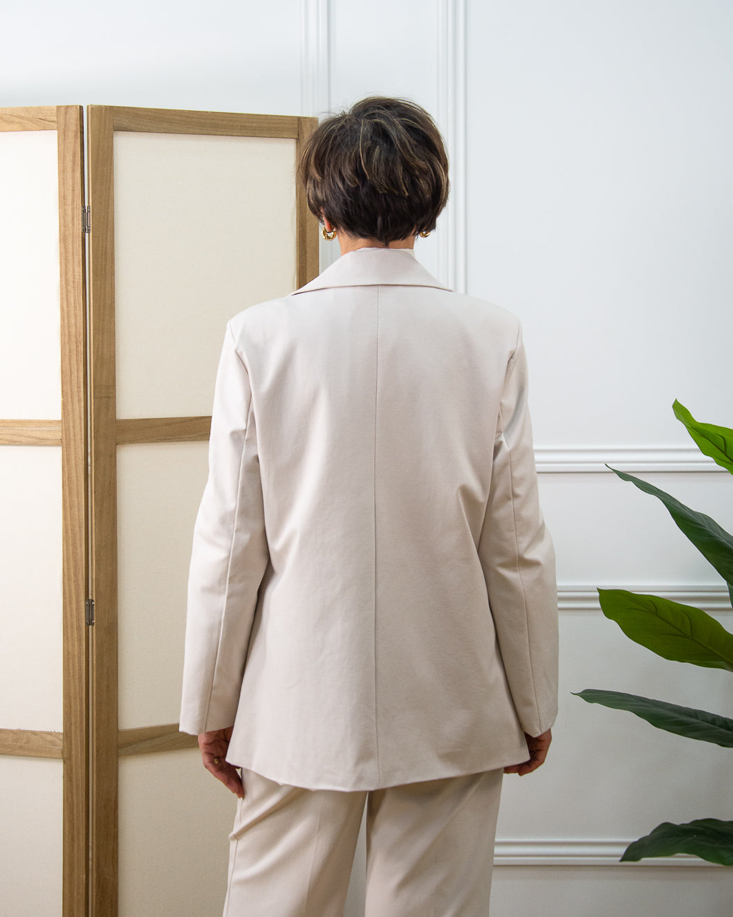 Blazer elástica, lleva forro y bolsillos, manga larga, lleva broche súper tendencia en la solapa que se puede quitar. A juego con el pantalón Sofía y bombacho Sofía se puede hacer un conjunto ideal.