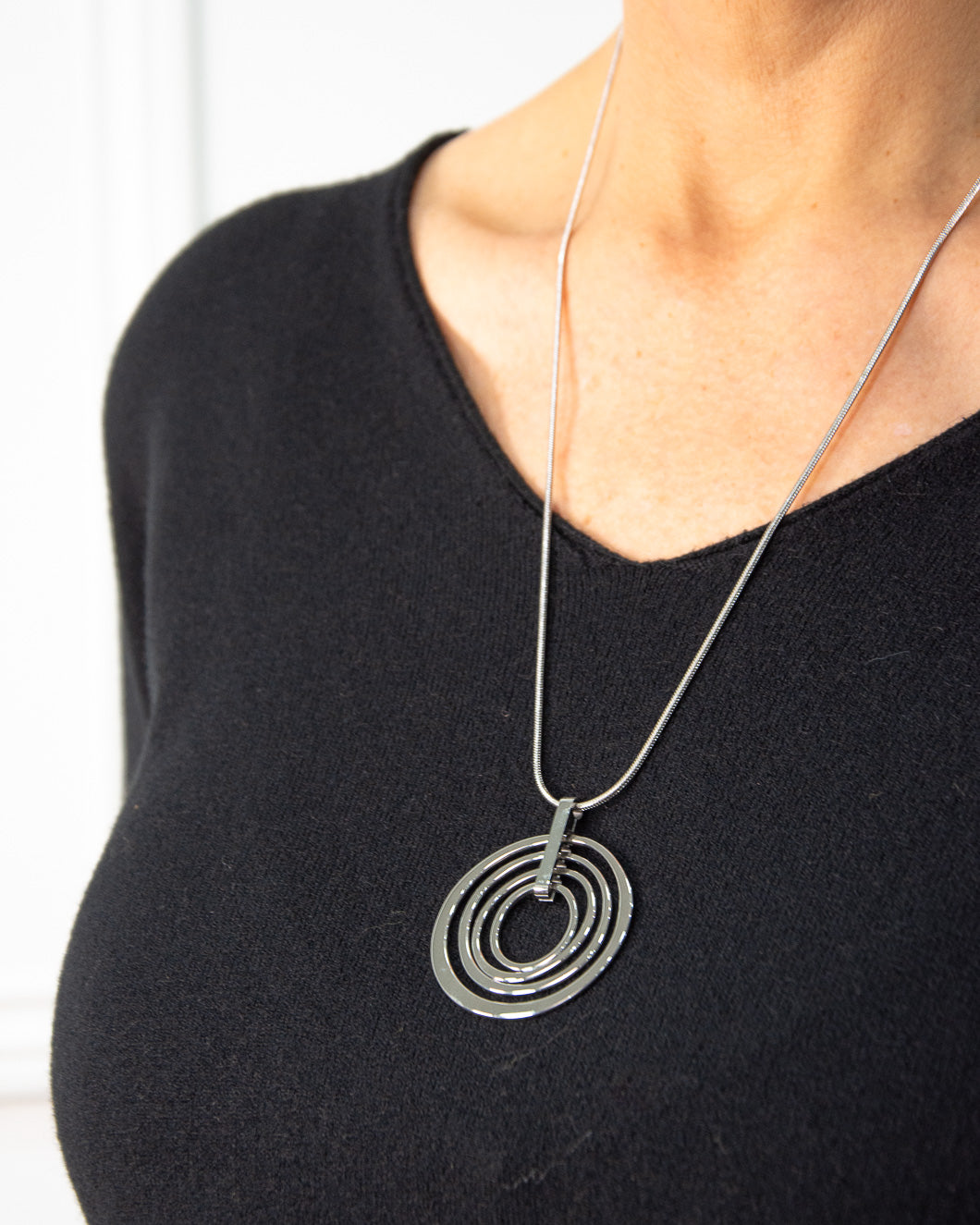 Colgante con cordón redondo de acero, largo 60cm, el colgante mide 5cmx5cm. Lleva la cadena alargadora de 5cm.