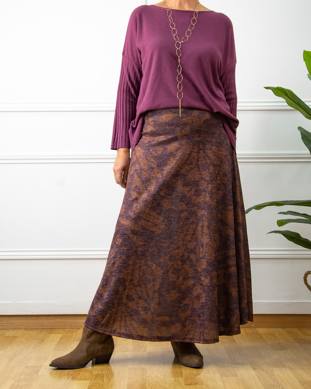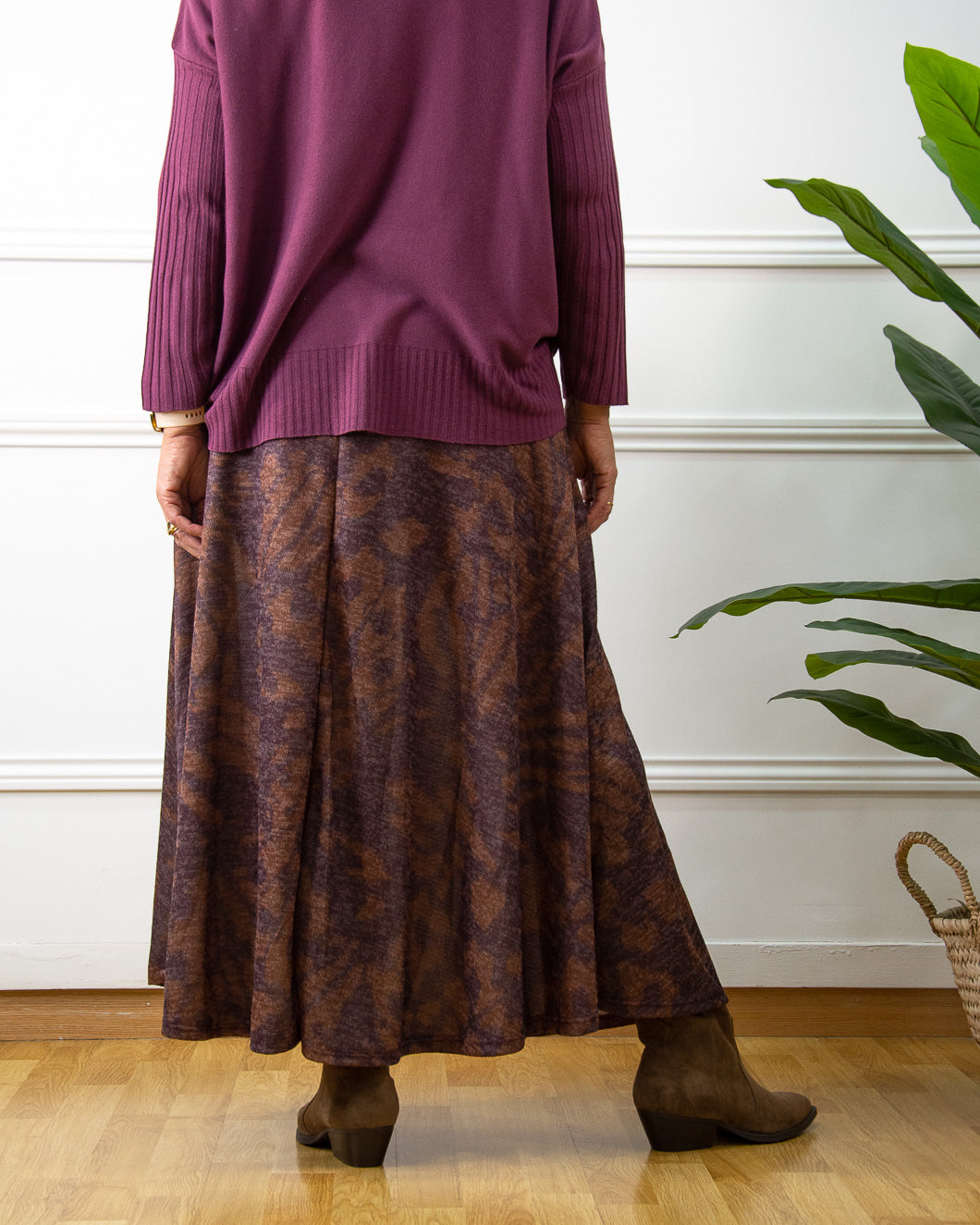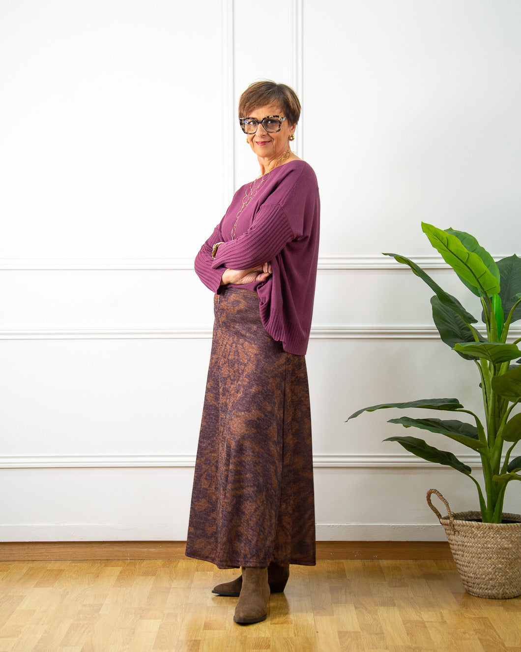 Falda de tejido efecto lana, el tacto es muy suave, ideal para combinar con bota alta.
