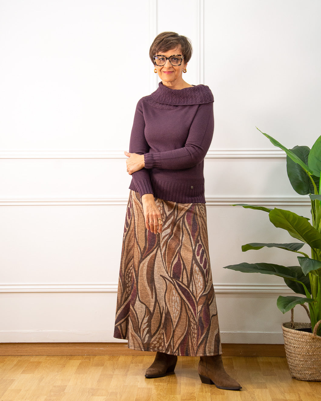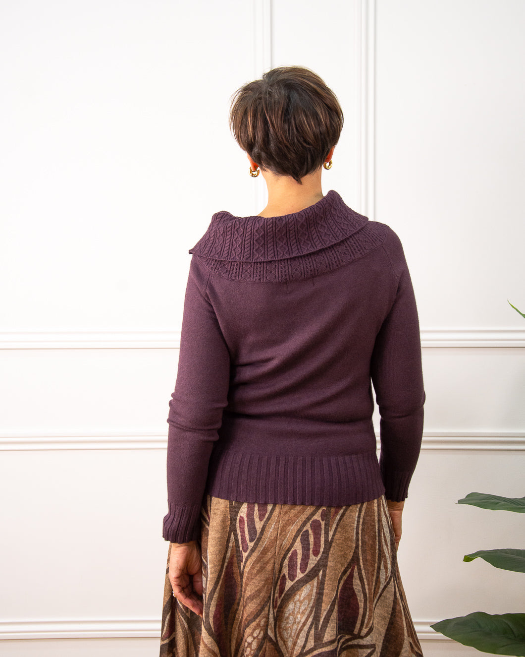 Jersey cuello Bandó ,manga ajustada con puño y cintura de canalé. El cuello es caído, se puede llevar abierto enseñando los hombros.