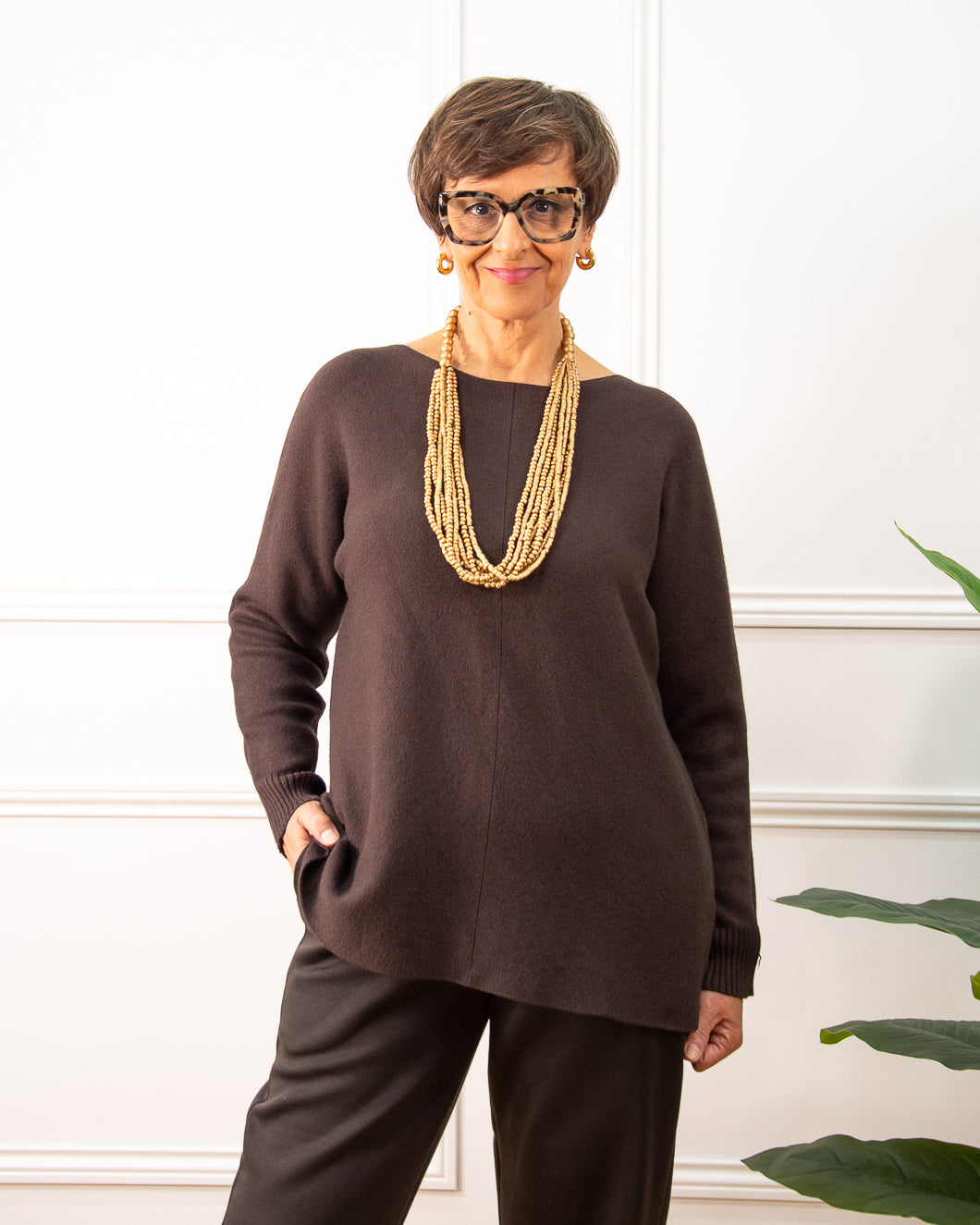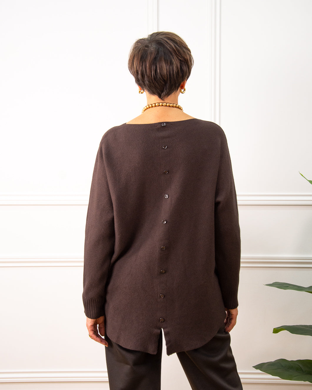 Jersey muy abrigadito, es de doble punto, cuello caja, lleva mini botones en la espalda, acaba por detrás abierta para que no marque la cadera. Ideal para combinar con el pantalón zebra.
