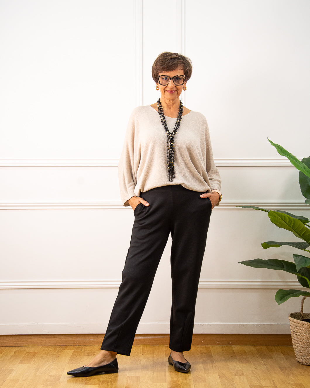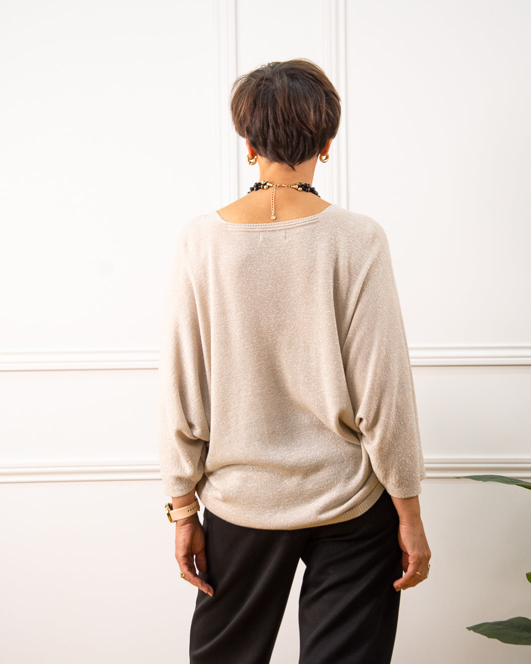 Jersey de lúrex, es muy suave por dentro, lleva cuello de pico alto y manga francesa, es top ventas y se puede usar casi todo el año como un fondo de armario para diferentes looks de vestir y casual.