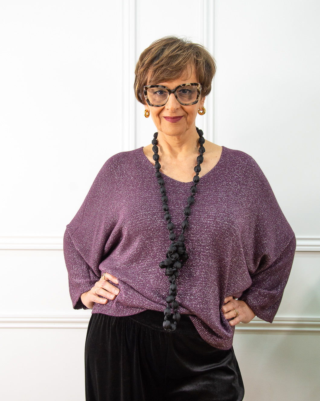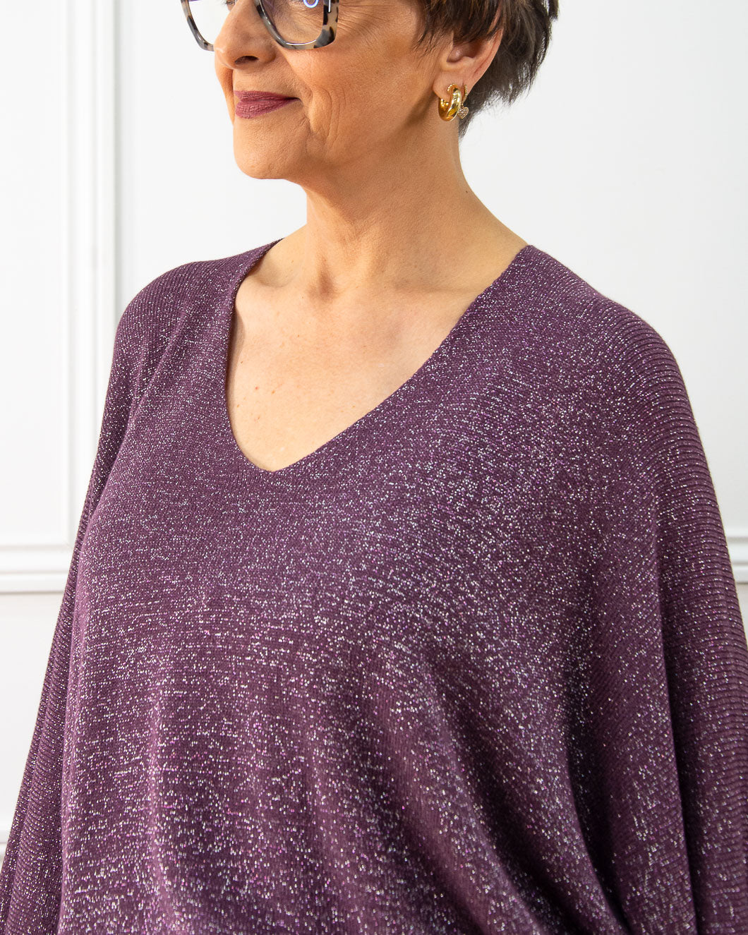 Jersey de lúrex, es muy suave por dentro, lleva cuello de pico alto y manga francesa, es top ventas y se puede usar casi todo el año como un fondo de armario para diferentes looks de vestir y casual.