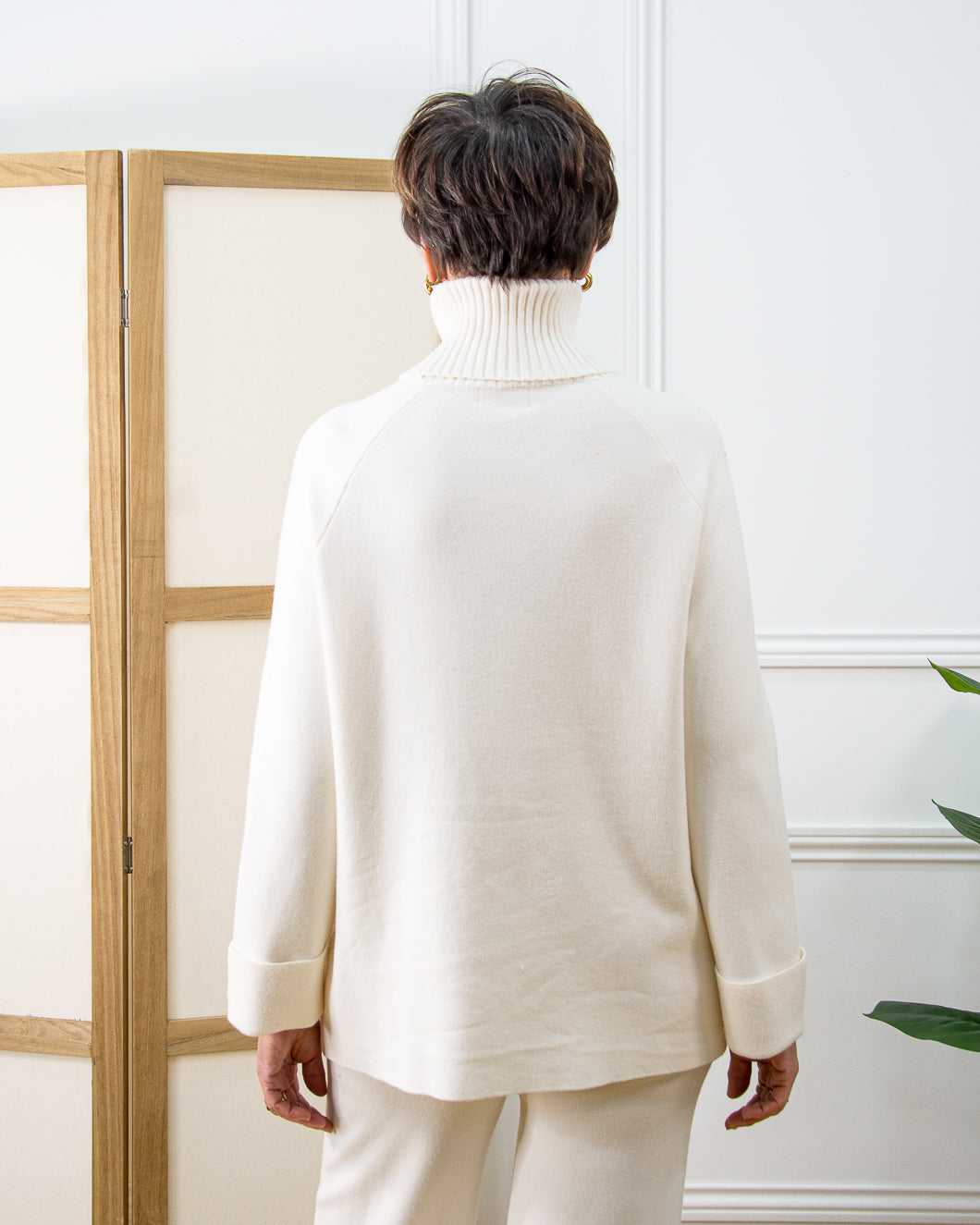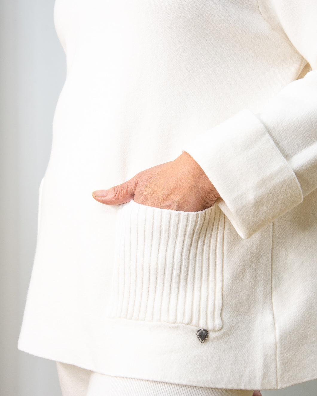 Jersey de doble punto, cuello alto de canalé, bolsillos delanteros a juego , lleva puños de 5cm.