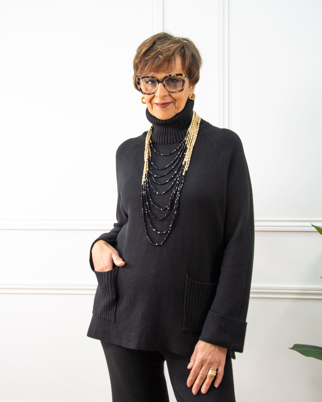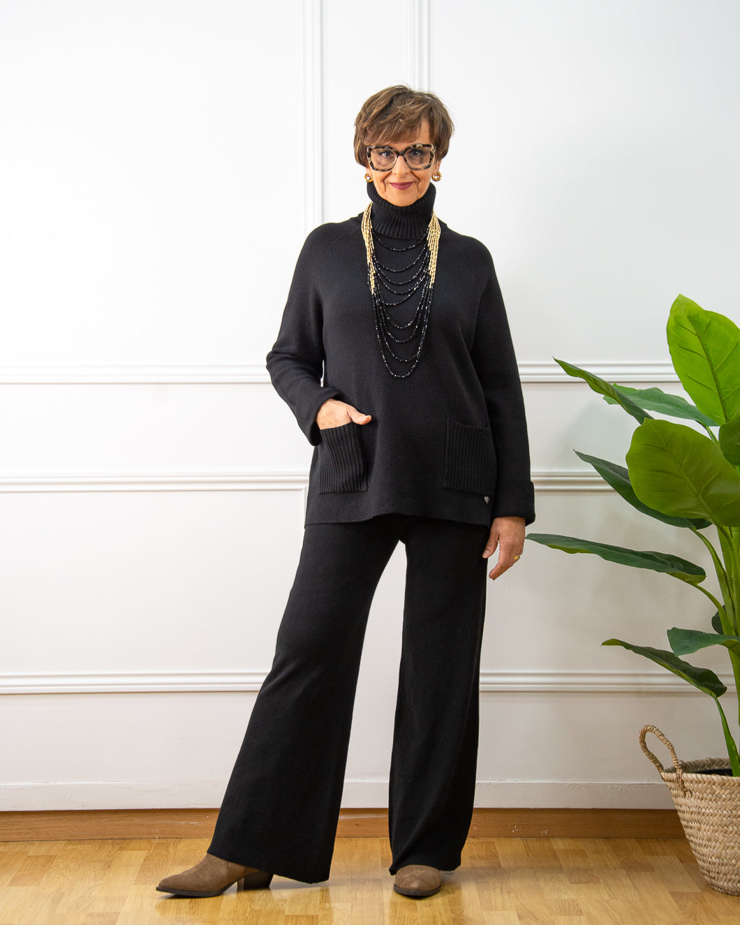 Jersey de doble punto, cuello alto de canalé, bolsillos delanteros a juego , lleva puños de 5cm.
