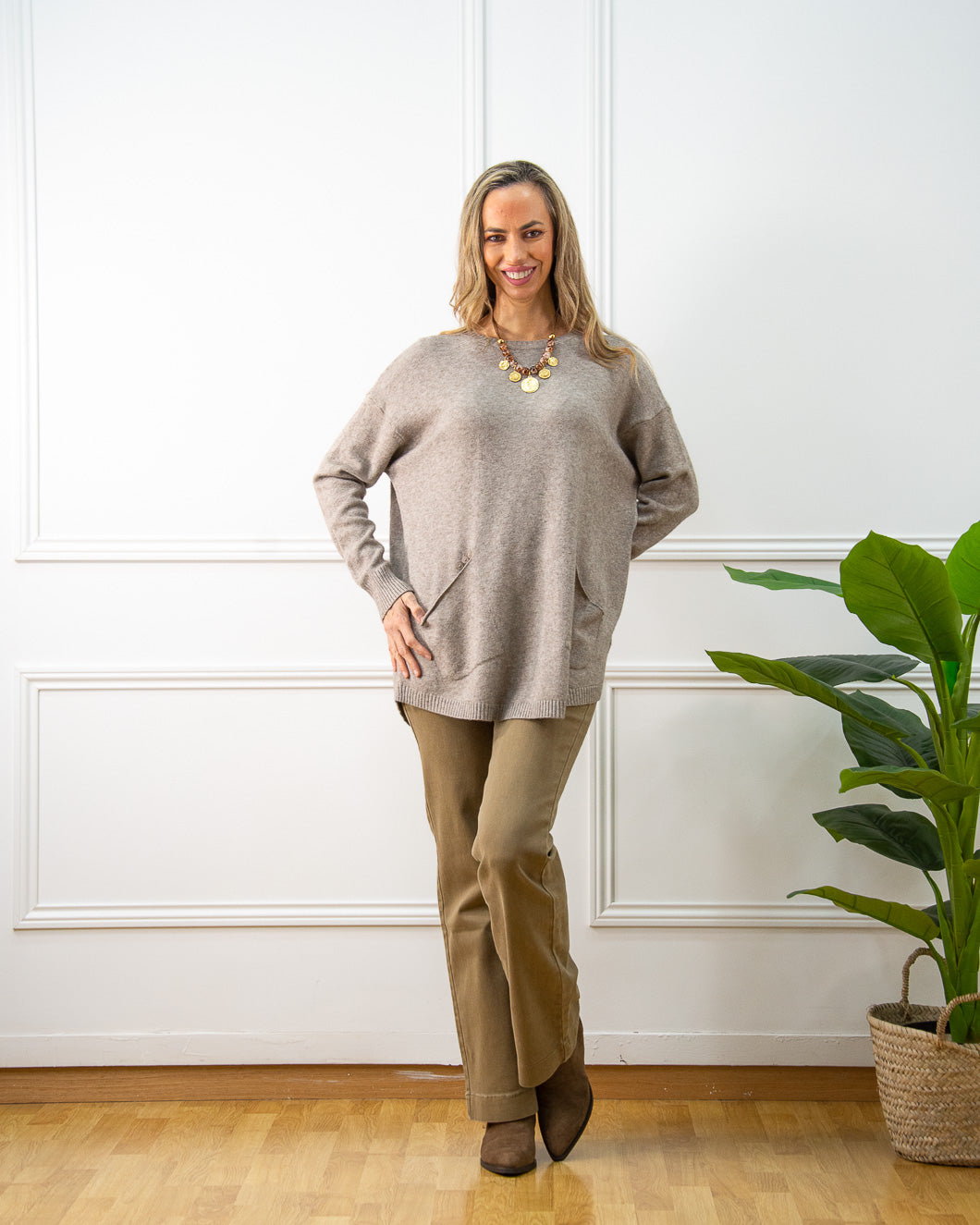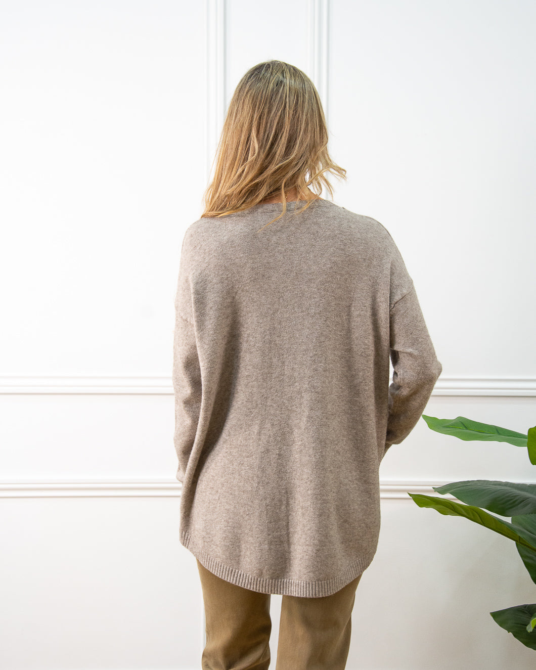 Jersey oversize con bolsillos. lleva tres botones de adorno encima de cada bolsillo.