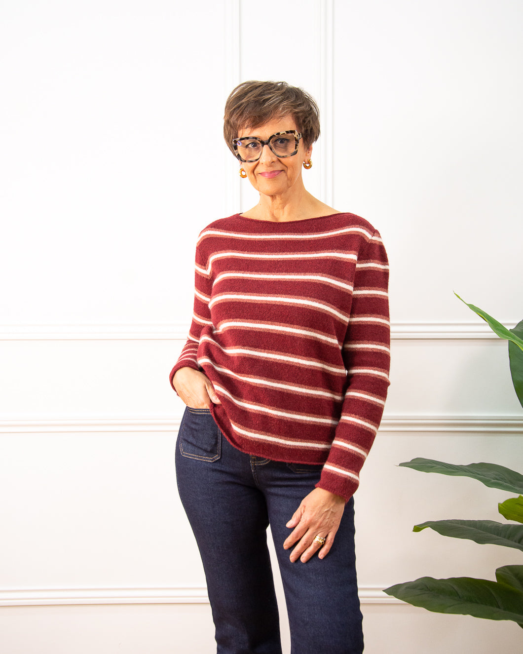 Jersey de rayas ultrasuave, muy calentito, combina muy bien con vaqueros para conseguir un look casual.