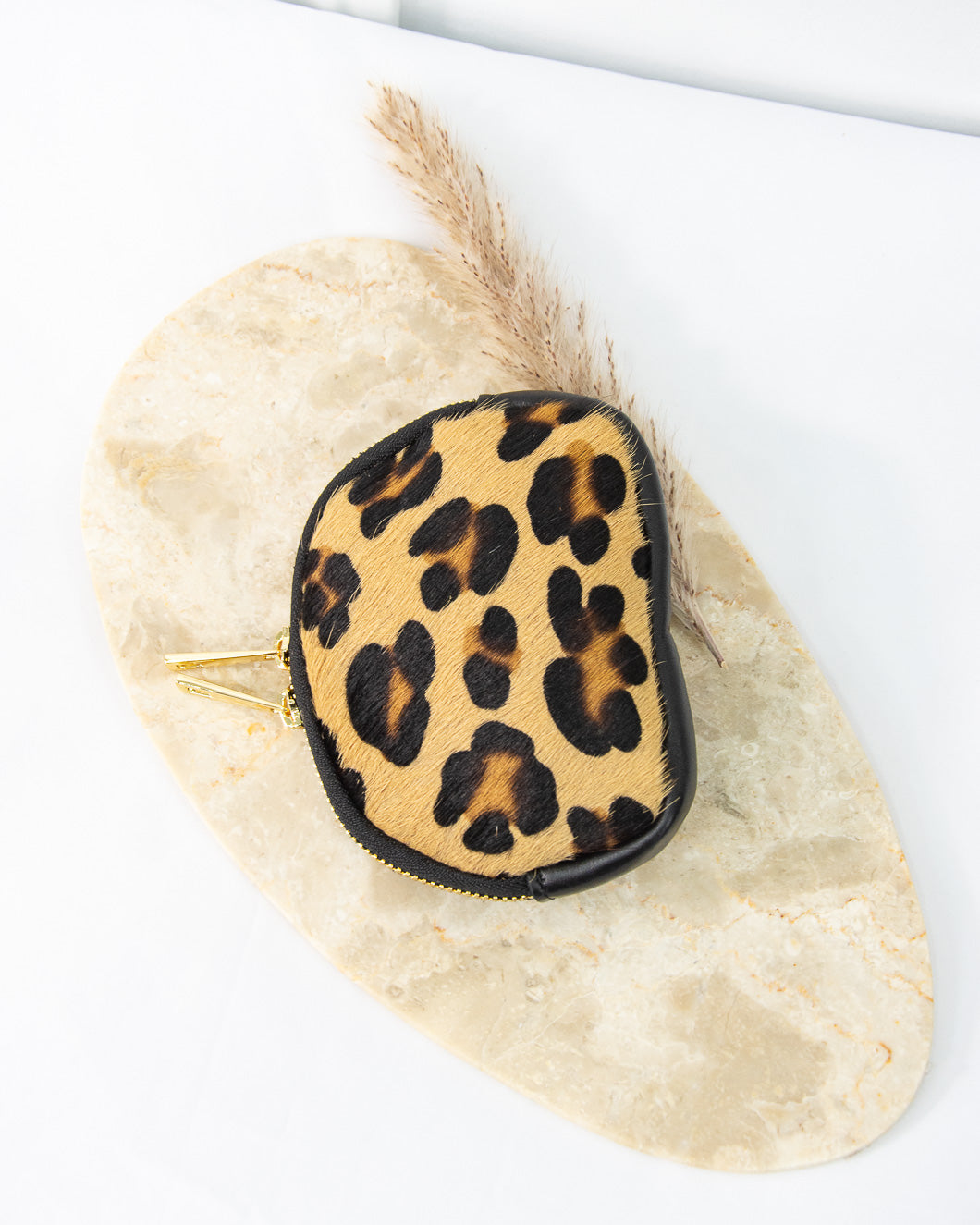 Medidas11x15. Lleva una cremallera. Liso por detrás y de pelo por delante. Tres dibujos cebra, leopardo y tigre.