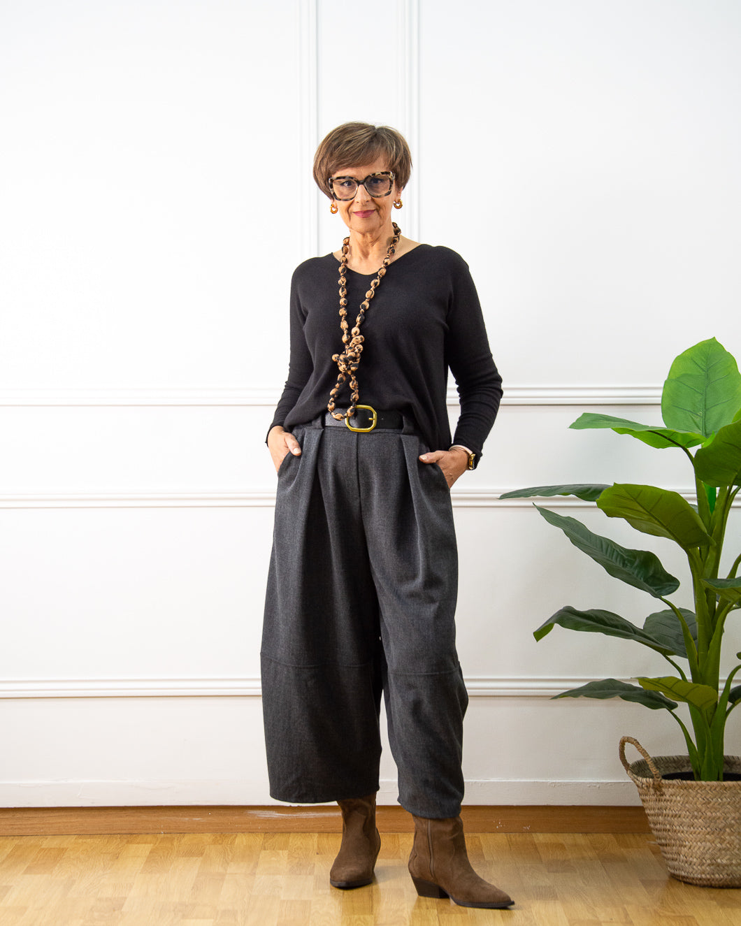 Pantalón súper tendencia, tipo globo tobillero, ideal para llevar con bota alta.