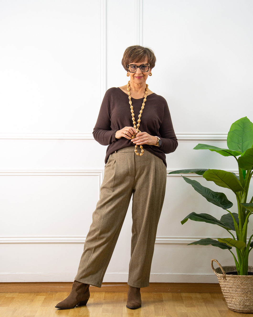 Pantalón de franela con estampado espiguilla, no tiene cremallera, por lo que lleva goma en la parte trasera solamente para que no haga volumen en el abdomen, bolsillos laterales. Es súper suave al tacto. Tiene el blazer para hacer conjunto.
