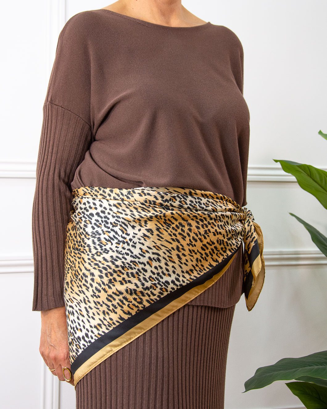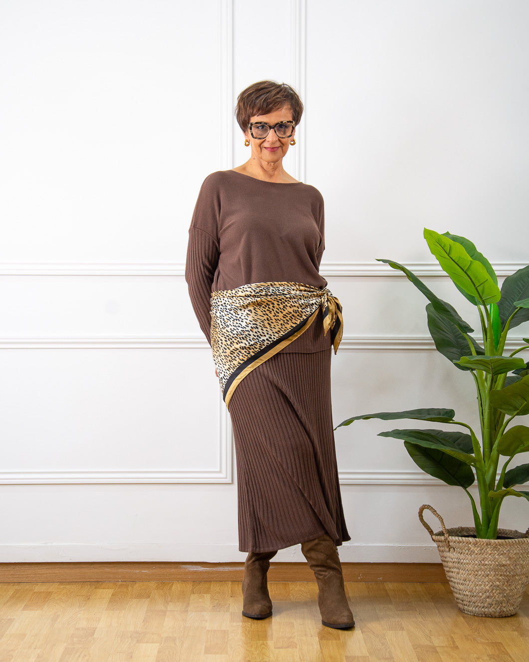 Composición 100% poliéster. Color único marrón. Medidas 90x90cm.