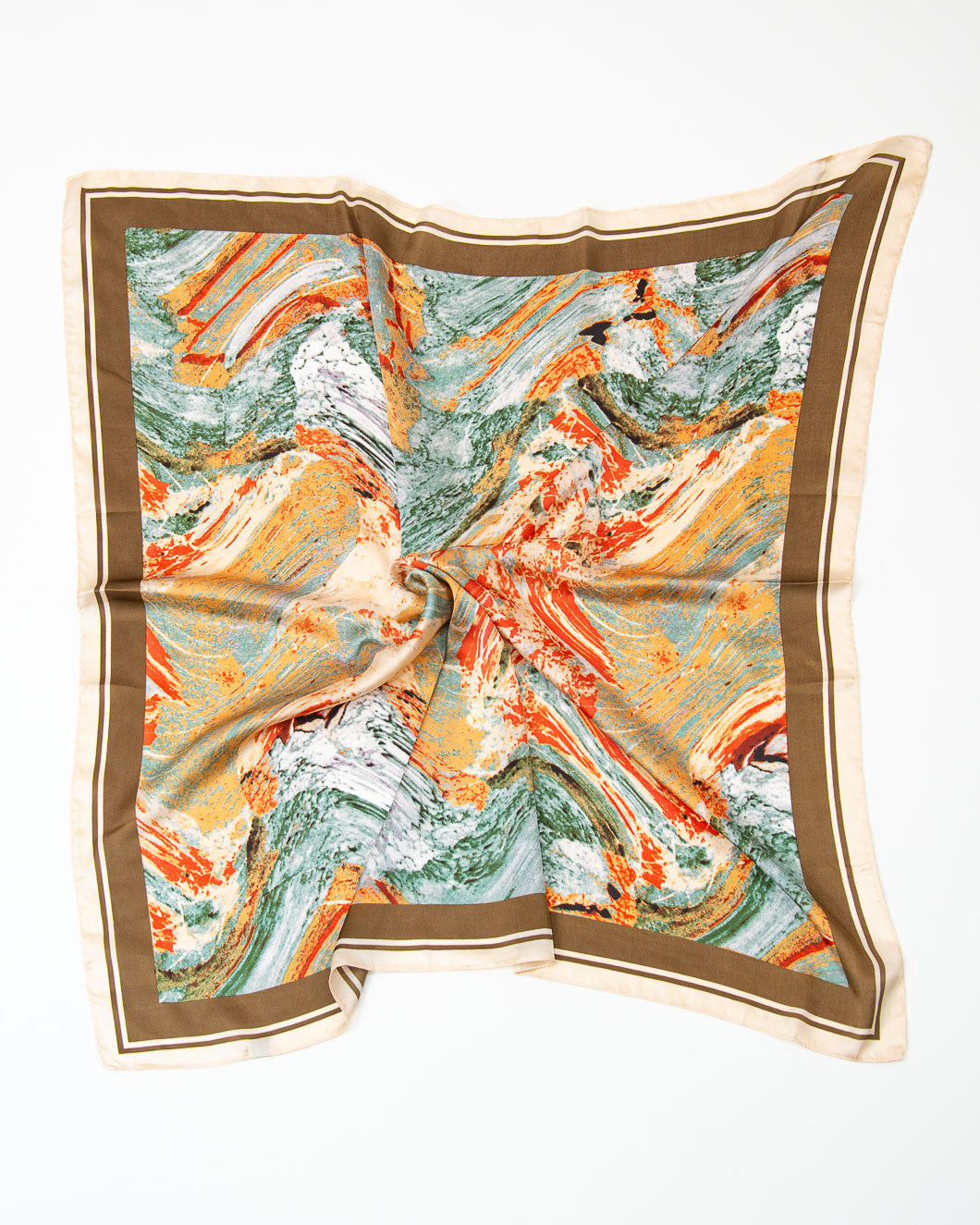 Composición 100% poliéster. Color único marrón. Medidas 90x90cm.