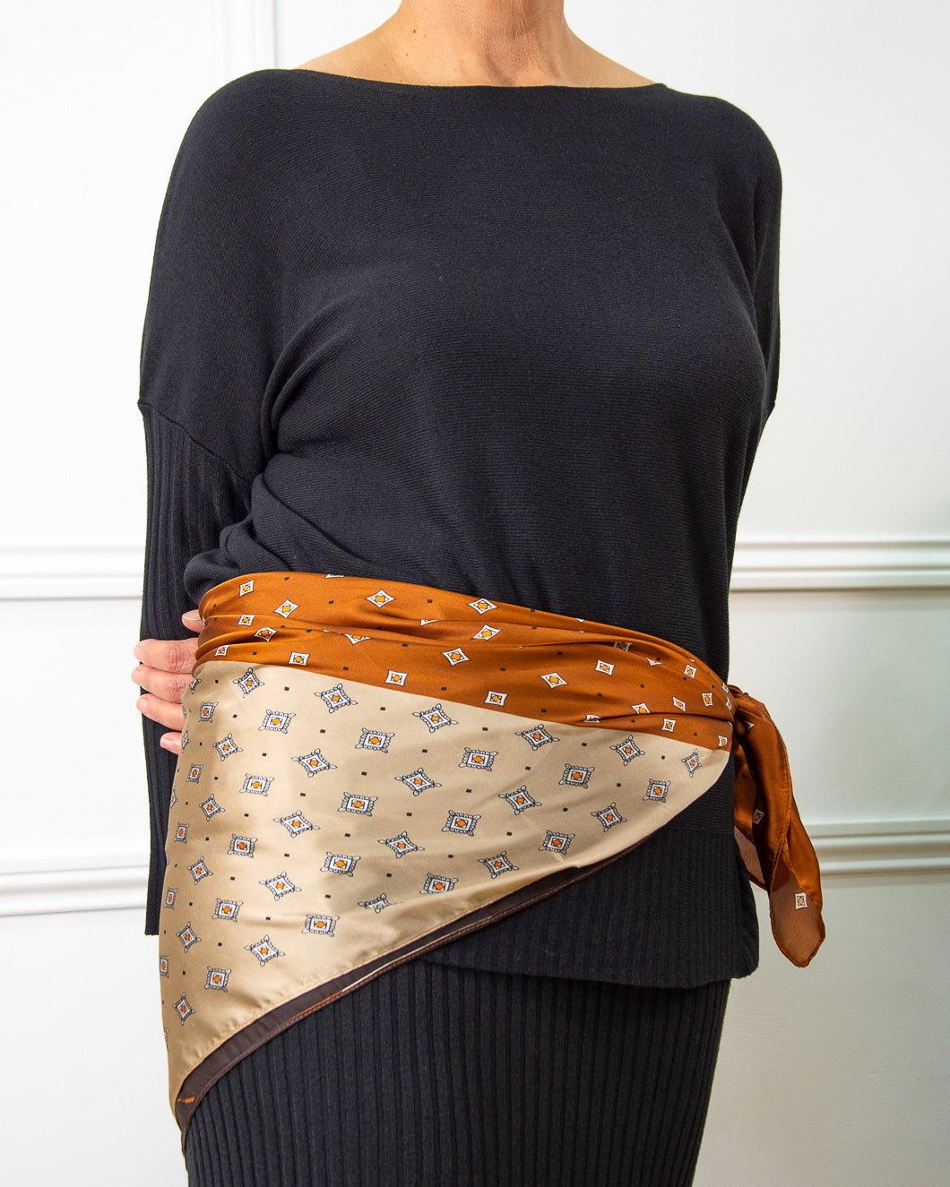Composición 100% poliéster. Color único marrón. Medidas 90x90cm.